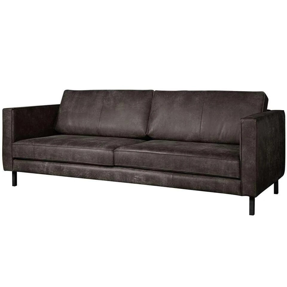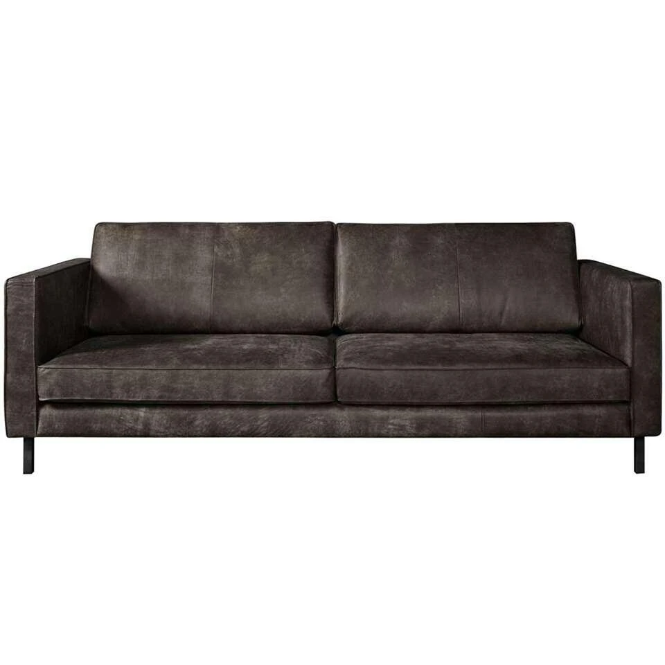 Bank Ferro 3,5-zits is een stoere bank met een oersterke leren bekleding. Het leer in combinatie met de zwarte metalen poten maken deze bank een echte eyecatcher voor je interieur. Dankzij het hoge zitcomfort kun je er uren heerlijk op zitten of liggen. Op deze bank kun je ruim zitten met maar liefst drie personen. Je kunt er natuurlijk ook heerlijk in je eentje languit op liggen. Omdat bank Ferro gemaakt is van 100% rundleder, is iedere bank anders. Dit is een kenmerk van het natuurlijke materiaal. Hierdoor is geen enkele bank gelijk van kleur, vorm en structuur. Elke Ferro bank is dus uniek!.