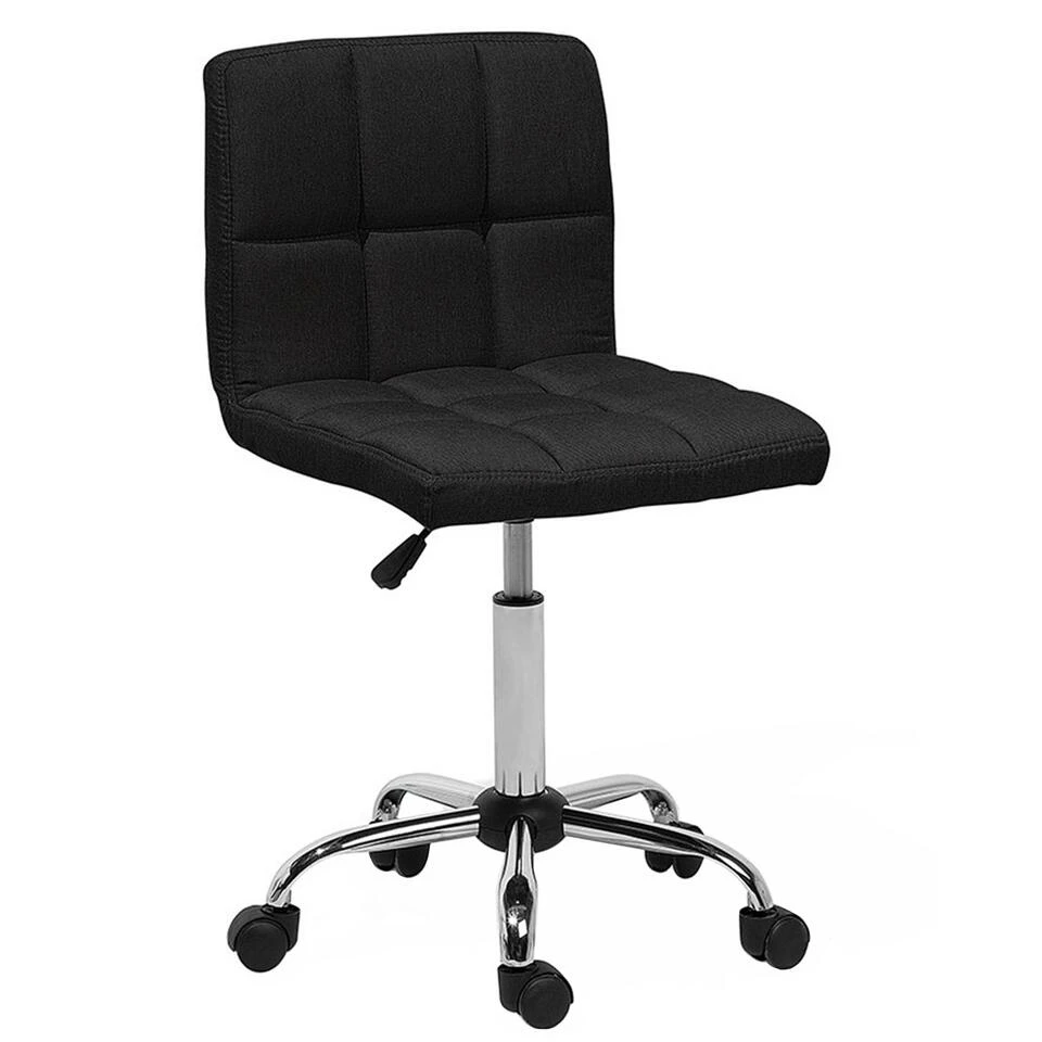 Elegante en klassieke bureaustoel in zwart. Voeg een vleugje elegantie toe aan je thuiskantoor met deze stijlvolle stoel. Het verchroomde onderstel en de comfortabele zetel en gestikte stofbekleding creëren een klassieke stoel met een modern tintje. Met de 360° draai- en hoogteverstelling kan je lange tijd comfortabel aan je bureau zitten zonder je rug te vermoeien.