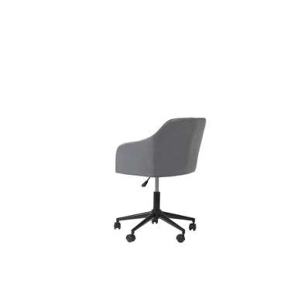 Kuipstoel met wieltjes in grijs fluweel. Deze moderne maar stijlvolle bureaustoel past perfect in elk modern of Scandinavisch geïnspireerd interieur. De toegepaste materialen zoals de schuimvulling zorgen voor een uiterst comfortabel zitcomfort, terwijl de gebogen armleuningen de kwaliteit en steun weergeven van een traditionele fauteuil. De stoel is in hoogte verstelbaar en heeft een draaimechanisme, waardoor deze zeer praktisch en veelzijdig is.