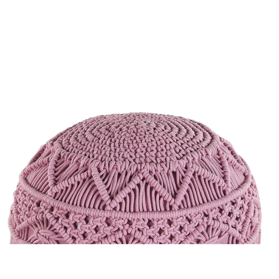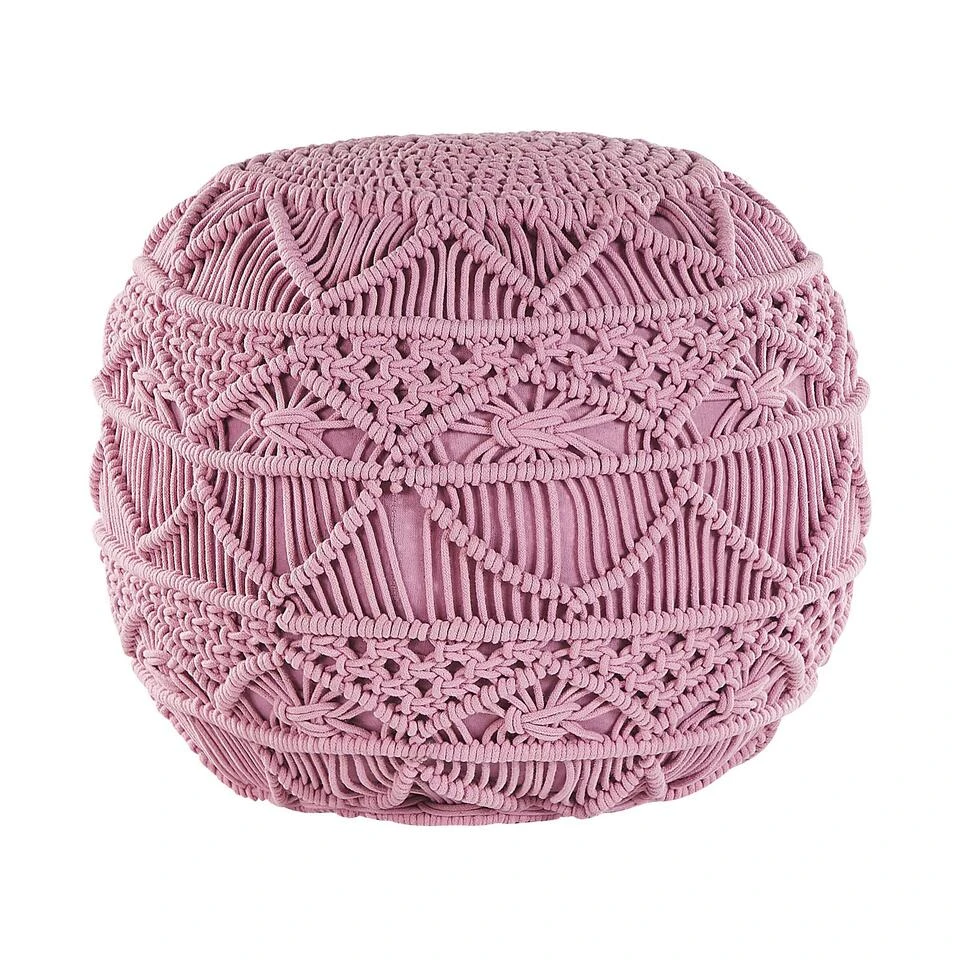 Schattige gebreide poef. Esthetisch charmant en tegelijkertijd heel praktisch. Met deze leuke boho – poef in stijlvolle roze is dit heel goed mogelijk. Dankzij het decoratieve breiwerk en de aandacht voor detail draagt deze poef bij aan extra sfeer in iedere woonruimte. Je kunt deze poef als alleenstaand meubelstuk of decoratie item gebruiken, maar ook kiezen voor meerdere, bijvoorbeeld in verschillende kleuren.