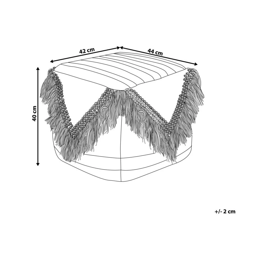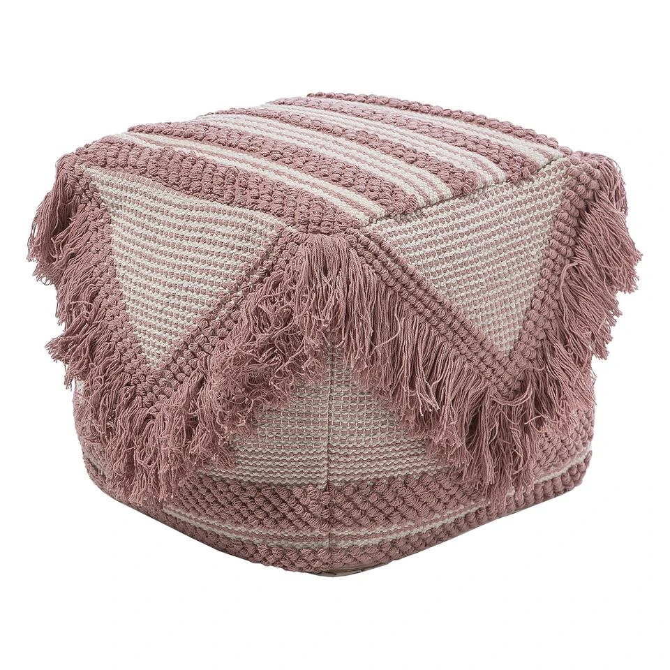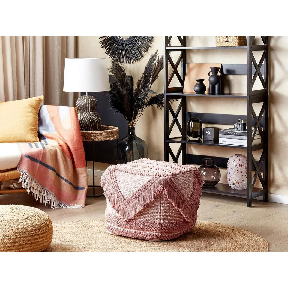 Boho-poef in zachtroze. Verrijk je interieur met deze prachtige poef in gebreide look. Het aangenaam zachte oppervlak, het subtiele kleurenschema in lichtroze en de speelse franjes geven het een speciale, decoratieve touch. Het perfecte accessoire voor elke woon- en kinderkamer.