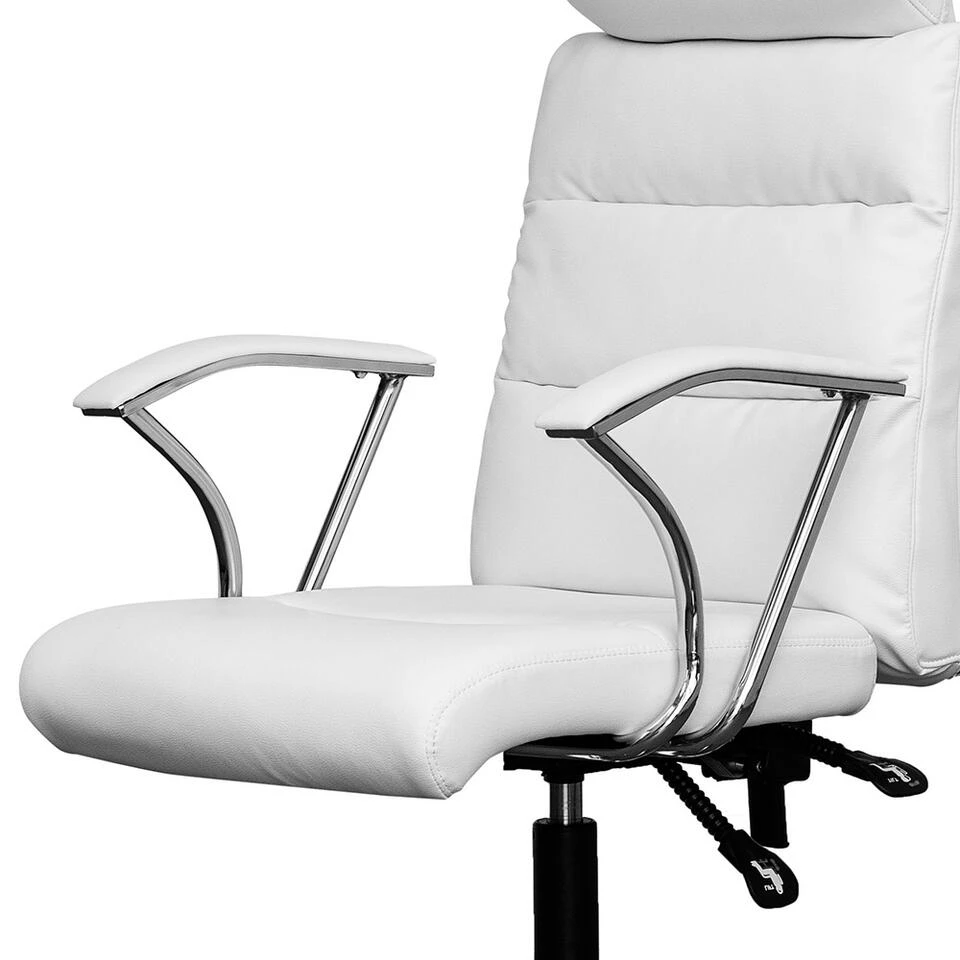 De zitting, rugleuning, hoofdsteun en armleuningen zijn uitgevoerd in PU leder. Daardoor vormt deze stoel een duurzame toepassing voor in huis of op kantoor. PU-leer is een synthetische leersoort die qua uiterlijk nagenoeg niet van echt leer te onderscheiden is. Het is slijtvast, vuilbestendig en kan in verschillende elegante kleuren worden besteld. De armleuningen en stervoet zijn chroomkleurig wat zorgt voor een luxe uitstraling.