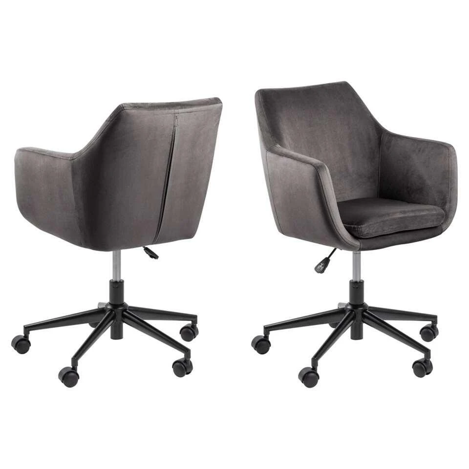 Bureaustoel Uppsala is bekleed met grijs fluweel en zit zeer comfortabel. De stoel is verstelbaar in hoogte en heeft wieltjes. Deze stoel zit niet alleen lekker. hij ziet er ook zeer stijlvol uit. Uppsala is leverbaar in allerlei aantrekkelijke varianten qua type stoffering. kleur en onderstel.