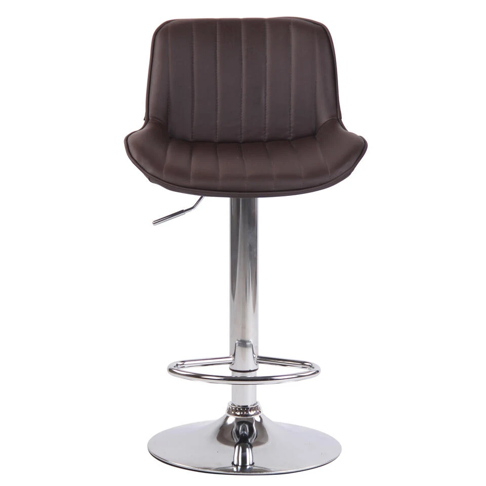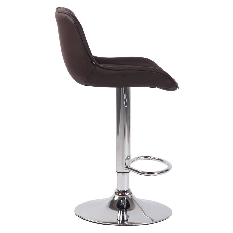 Deze barkruk geeft elke ruimte een exclusieve uitstraling en overtuigt niet alleen door zijn uitstekende ziteigenschappen, maar ook door zijn moderne design. De zitting is bekleed met onderhoudsvriendelijk kunstleer. Met behulp van de gasveer kan dit model traploos op de gewenste hoogte worden ingesteld, zodat het ideaal geschikt is voor elke aanrechthoogte. De voetsteun, die voor een zeer goed zitcomfort zorgt, kan synchroon met de hoogte van de zitting worden versteld. De zitting kan samen met de voetsteun 360° gedraaid worden. Het frame is naar keuze gemaakt van metaal in chroom-look, wit of zwart metaal. Bovendien zitten er vloerbeschermers onder de trompetvoet om te voorkomen dat er krassen op de vloer komen.
