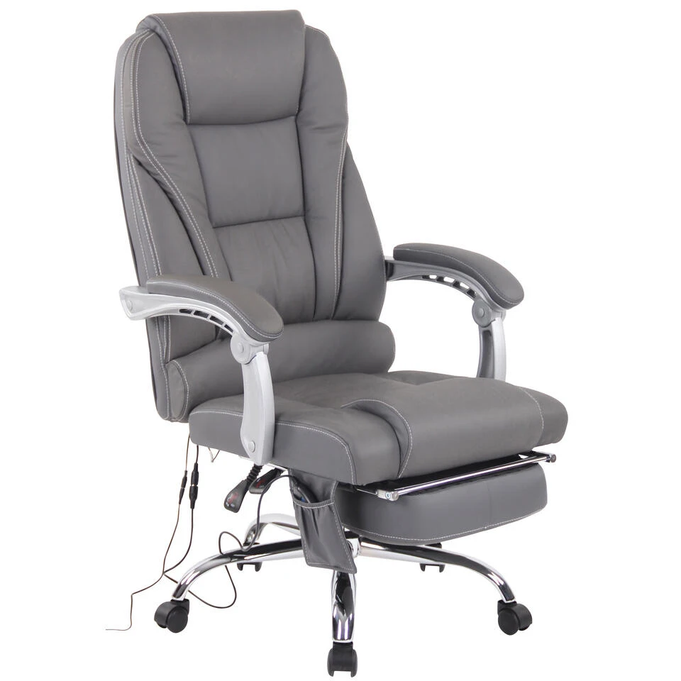 Ook de voetsteun en de kantelbare rugleuning van de ergonomische stoel zorgen voor een buitengewoon zitcomfort – leun achterover en geniet! De bureaustoel is traploos in hoogte verstelbaar en kan 360 graden worden gedraaid. Hij staat stevig op het metalen frame en vijf lichtlopende wielen die de stoel mobiel houden, zelfs op harde vloeren en tapijt. De massagestoel kan een belasting van maximaal 136 kg aan.