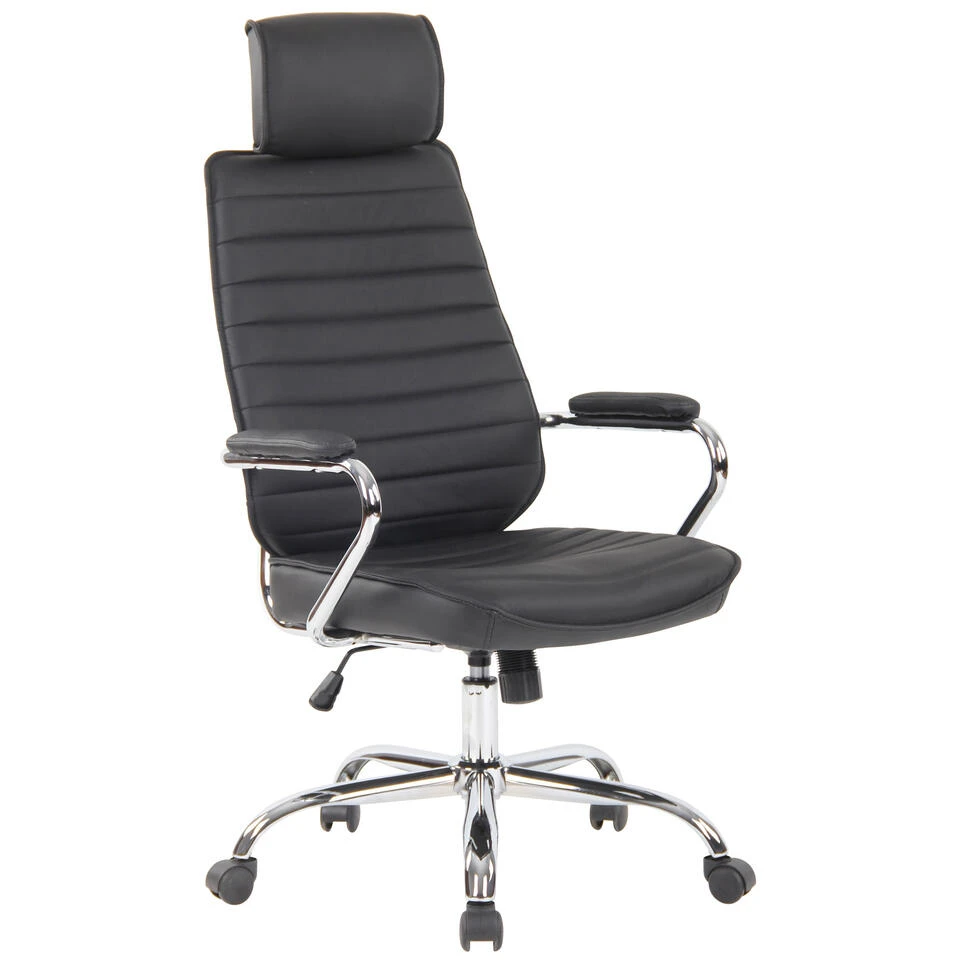 De Rako is een bureaustoel met een zeer hoogwaardige bekleding en een moderne uitstraling. De echt lederen bekleding ziet er niet alleen heel mooi uit, maar is ook bijzonder robuust en gemakkelijk schoon te maken. Een stevig metalen frame in chroomlook zorgt ook voor een veilige stand. De zithoogte is traploos instelbaar en garandeert urenlang ergonomisch zitten. Het ingebouwde kantelmechanisme zorgt ook voor meer bewegingsvrijheid. De bureaustoel Rako staat stevig op vijf licht lopende wieltjes.