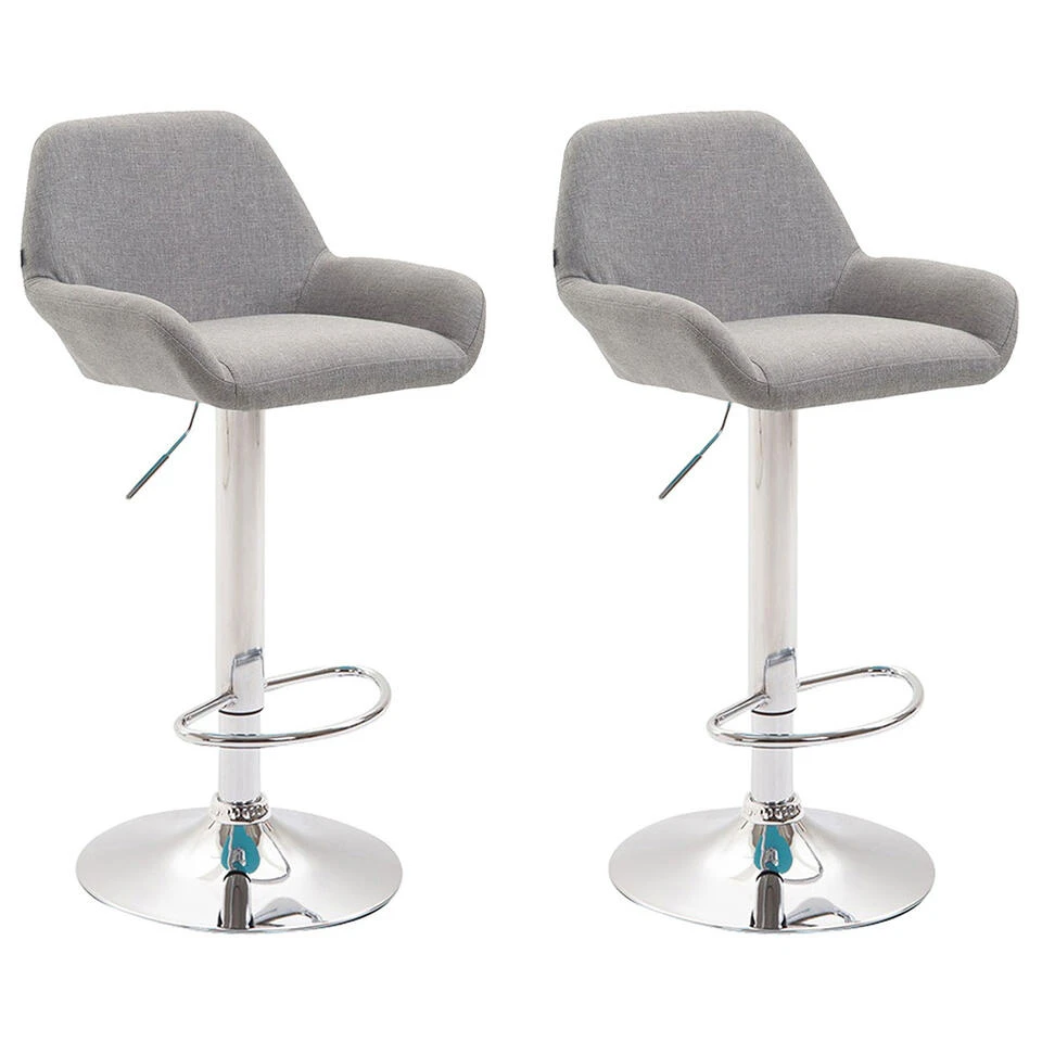 De set van 2 barkrukken Braga wordt gekenmerkt door een stijlvol ontwerp en de verwerking van hoogwaardige materialen. De stoelen van de barkrukken hebben een comfortabele bekleding van vormstabiel koud schuim en zijn bedekt met onderhoudsvriendelijke stof (100% polyester). De robuuste metalen frames in chroomlook zijn uitgerust met een voetsteun. De barkrukken zijn in hoogte verstelbaar door middel van een gasveer. De stoel kan 360 ° worden gedraaid.