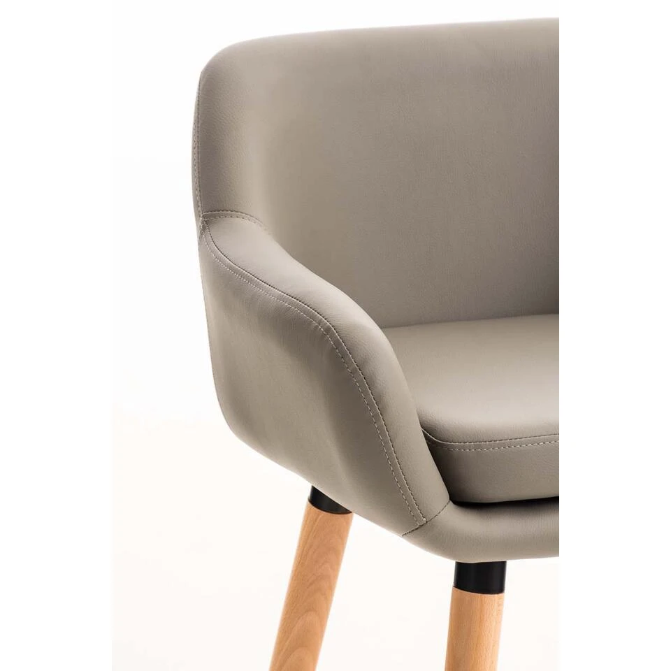 De barkruk Grant geeft elke bar iets extra s, ontworpen als een fauteuil, deze stoel valt op met zijn uiterlijk. Dankzij de rugleuning en de vorm is het ook mogelijk om meerdere uren comfortabel te zitten. De stoel met kunstleer bekleding en afneembare kussen is gemakkelijk te reinigen. Het klittenband zorgt dat de zitting op zijn plaats blijft. Bovendien kan de hoes van het zitkussen gemakkelijk worden verwijderd en dankzij de ritssluiting gewassen worden. Het stabiele vierpotige frame van beukenhout is voorzien van een discrete metalen voetsteun en maakt de vormgeving van de kruk af.