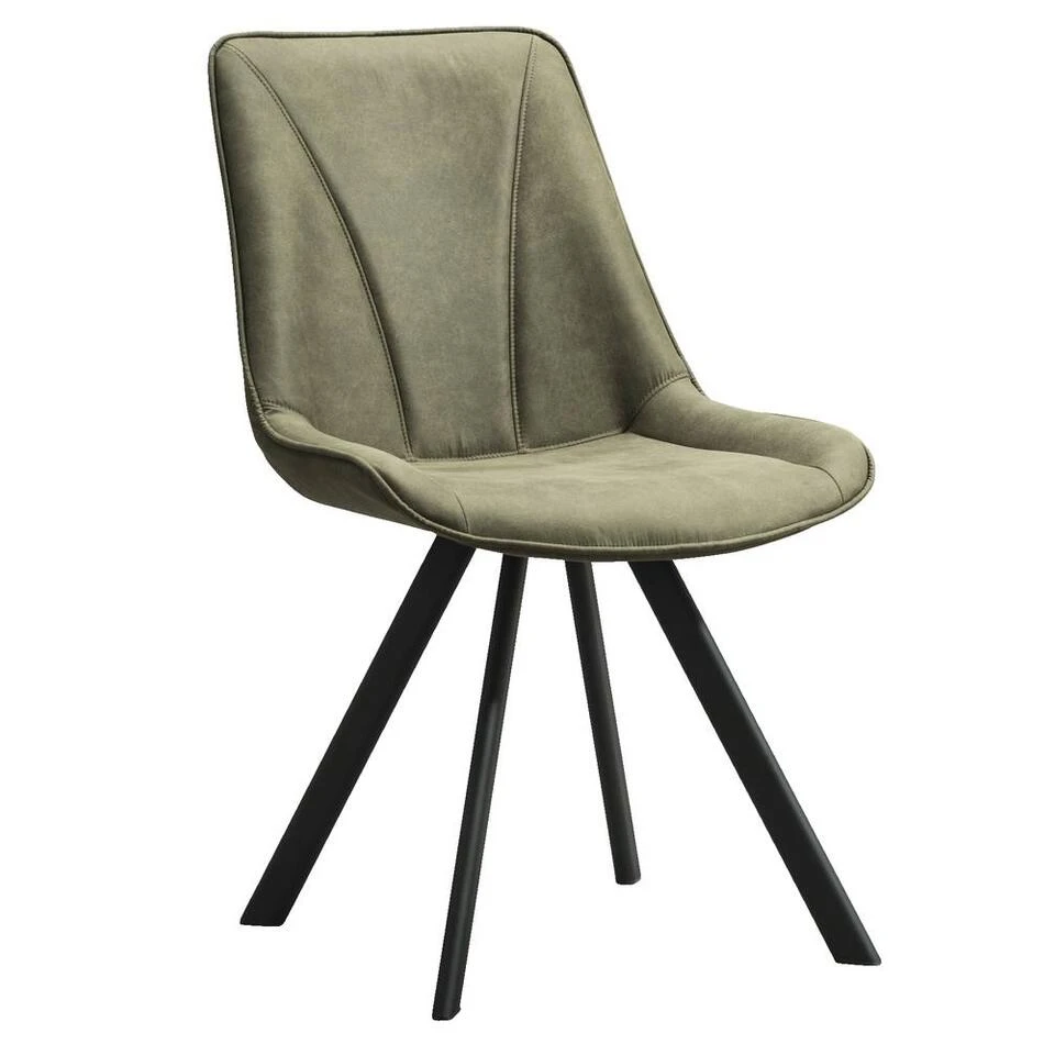 De stoel heeft een kuipzitting en een stoer onderstel. De kuip is bekleed met stof Cowboy (100% polyester) in kleur olijfgroen.