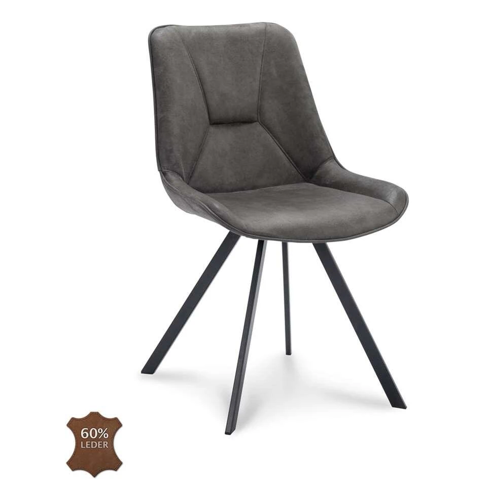 Eetkamerstoel Brent is bekleed met een stoere trendy microleder in de kleur Grijs. De eetkamerstoel heeft met zijn eigentijdse stiknaden een hippe look met een fijn zitcomfort. Daarnaast is de stoel uitgevoerd met een zwart gepowdercoat frame en handgreep. Beschikbaar in meerdere kleuren microleder dat bestaat uit 60% echt leder.