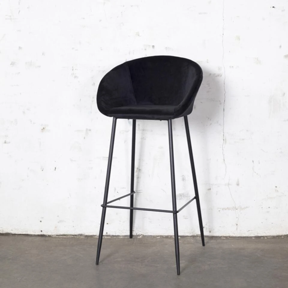 De barkruk Amira in het velvet zwart is een hippe en eigentijdse barkruk. De barkruk Amira komt uit de nieuwe collectie van Giga Meubel. De Amira is bekleed met een zachte velvet stof en heeft een metalen onderstel.