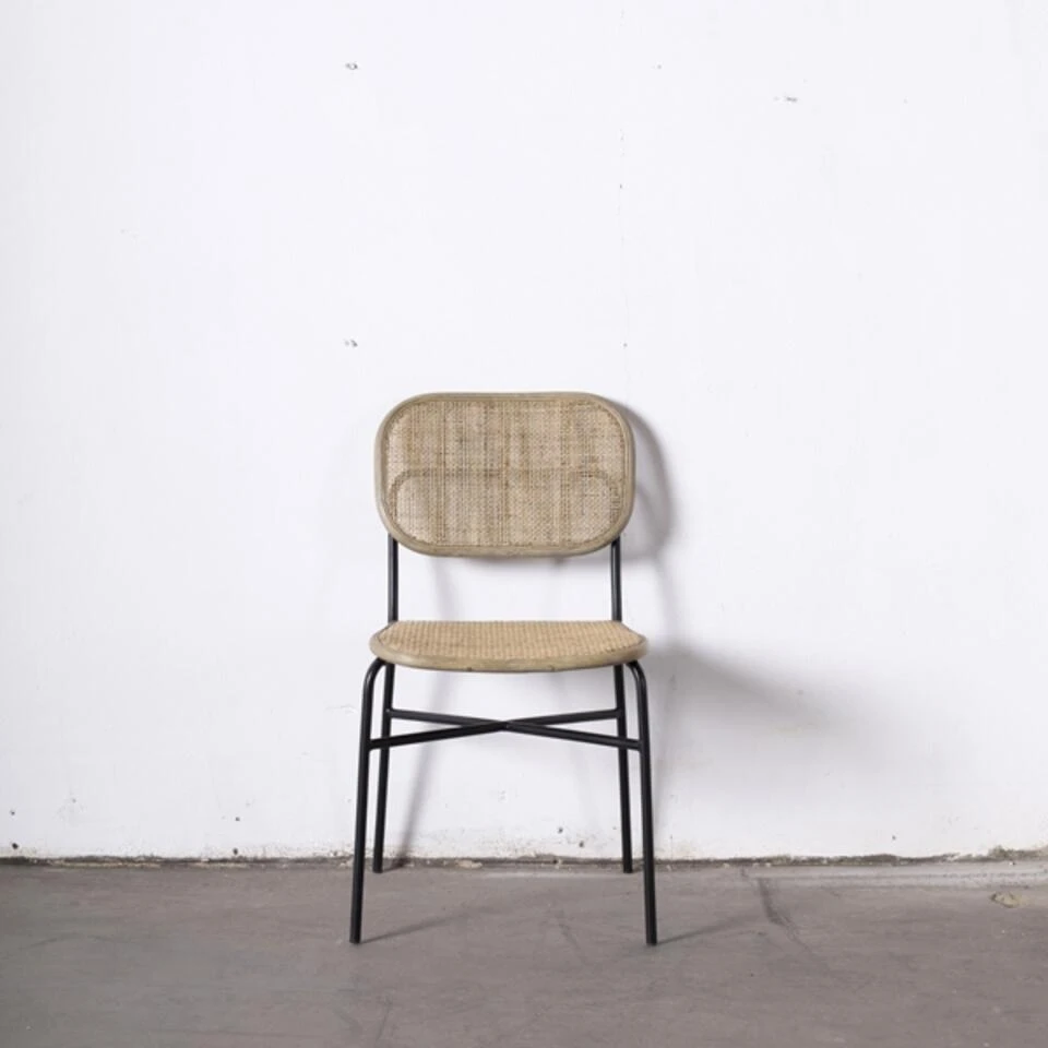 Stoel Webbing past helemaal in de trend van nu: Bohemian. Deze stoel met retrolook past perfect in je woon- of slaapkamer of keuken.De stoel is gemaakt van rotan, dit geeft de stoel meteen een retro uitstraling. Maar niet alleen fans van de retrolook zullen deze stoel een aanwinst voor de woning vinden, ook in een modern interieur voelt deze stoel zich thuis. Dit komt door het onderstel van de stoel, de kleur zwart is een moderne kleur en past bij vele andere kleuren en stijlen zoals bohemian. Verkrijgbaar in: grijs en naturel.