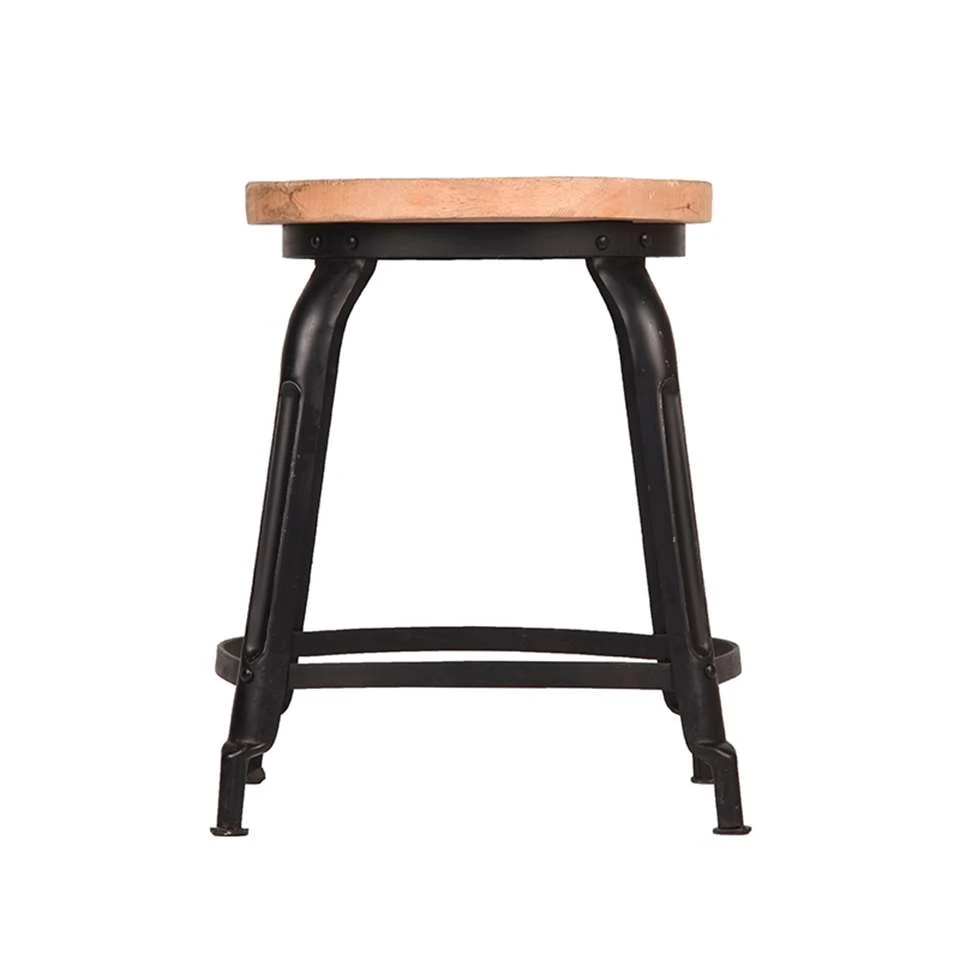 Super eigenwijs en super stoer, deze industriële kruk Delhi zwart van het eigenzinnige merk LABEL51. Voorzien van robuust, metalen onderstel en een prachtig houten blad is dit krukje een echte topper in onze collectie. Omdat het zitvlak is gemaakt van hout, is elk krukje one of a kind. Er is er geen één hetzelfde dus ben je altijd verzekerd van een uniek item.