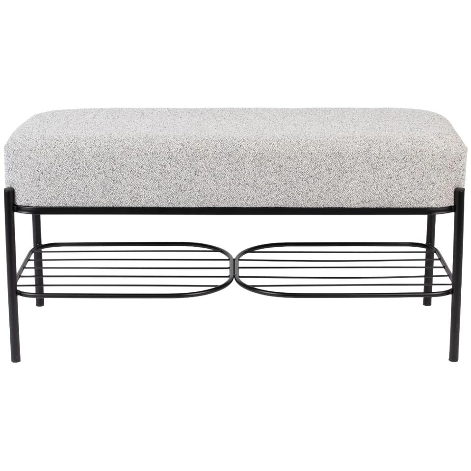 Dit hippe bankje heet Mandal! Kenmerkend aan dit exemplaar is haar stoere, zwart metalen frame, welke is voorzien van een handig rekje om bijvoorbeeld schoenen of tijdschriften op te plaatsen. Het stevige zitkussen dat is bekleed met een zachte, grijskleurige stof biedt een aangenaam zitcomfort. Fijn om nog vlug de veters te strikken voor vertrek! Het geheel heeft een afmeting van B90xD35xH45 cm. Dankzij haar simplistische ontwerp is bankje Mandal breed inzetbaar in ieder interieur; geef haar bijvoorbeeld een mooi plekje in de aankomsthal, of plaats haar bij de eettafel of in de slaapkamer. Ook verkrijgbaar als krukje in twee varianten. Maximaal draaggewicht: 100 kg.