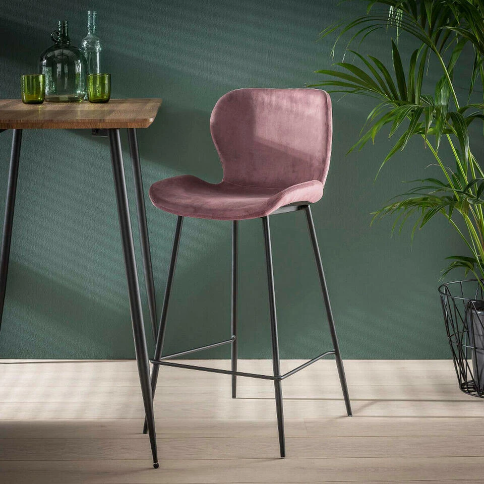 Bent u op zoek naar een moderne, stijlvolle en stoere barstoel? Dan is barstoel Verona een perfecte keuze! Deze barstoel is uitgerust met een heerlijke kuipzitting en is geheel bekleed met een zachte roze velours stof. Om deze stoel helemaal af te maken, rust de zitting op een zwart gepoedercoat metalen onderstel met een voetensteun. Barstoel Verona is ook verkrijgbaar met een zitting in het donkergrijs, groen, blauw, goud en champagne. Deze barkruk is te bestellen per vier stuks in dezelfde kleur. De prijs op de website wordt altijd weergegeven per stuk. Zithoogte: 67 cm.