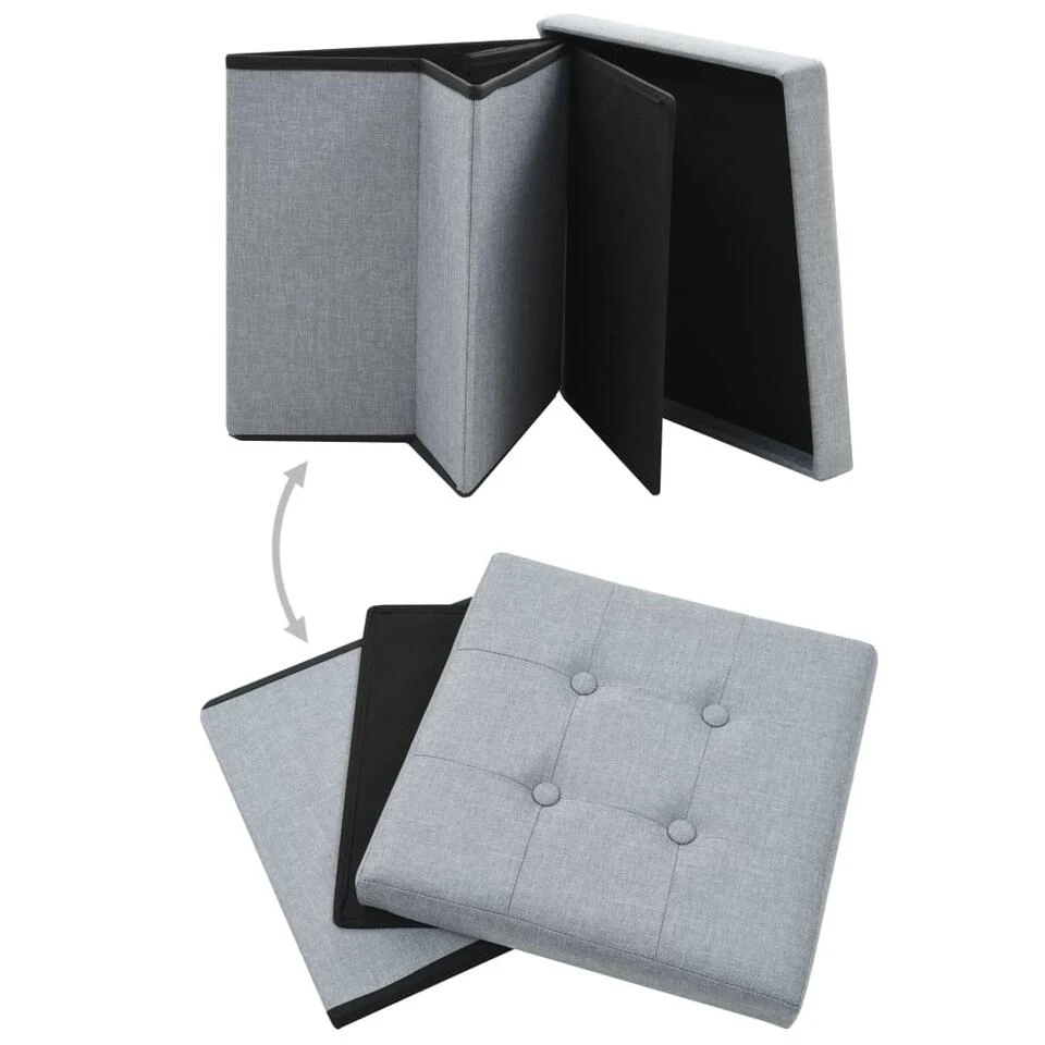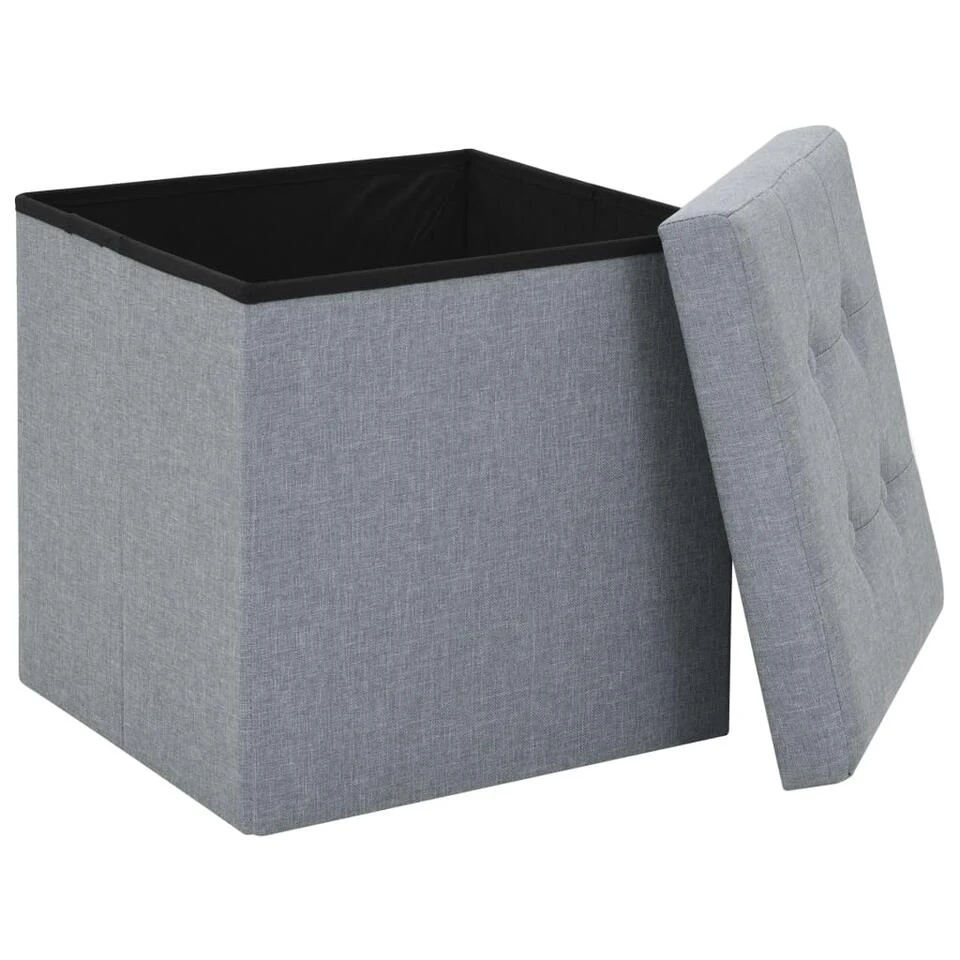 Dit opslagkrukje is gemaakt van MDF en is bekleed met kunstlinnen, dat duurzaam, stabiel en comfortabel is om op te zitten. De grijze kleur zorgt ervoor dat vlekken en stof niet makkelijk te zien zijn. Het heeft een afneembaar zitvlak en heeft voldoende opbergruimte om een groot aantal verschillende spullen buiten het zicht en toch binnen handbereik te houden. Als de kist niet in gebruik is, kan hij ingeklapt worden om ruimte te besparen.