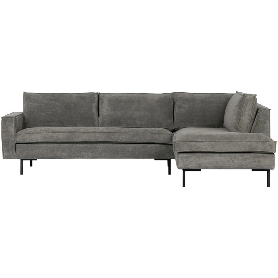 Deze bank heeft een hoogwaardige polyether vulling en is horizontaal gestoffeerd met een elegante ribstof.